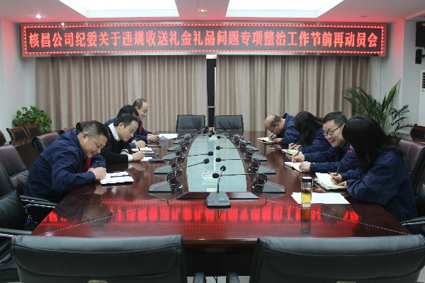 1月30日,正值新春佳節到來之際,核昌公司紀委組織公司全體領導班子成員、兩辦負責人在公司小會議室召開會議,就集團公司關于違規收送禮金問題專項整治工作相關通知精神進行傳達。會...