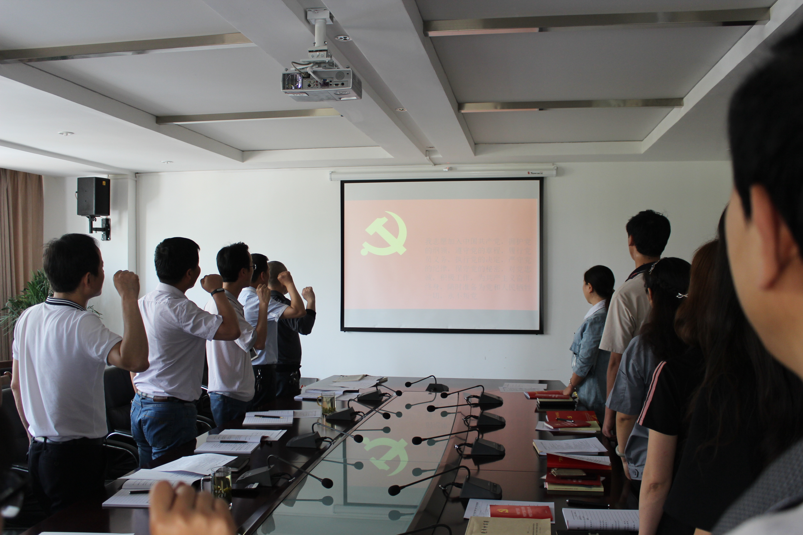 會上第一黨支部書記董普強就全黨開展“兩學一做”教育活動情況運用PPT的形式進行了形象生動的講解。根據公司黨委要求,制定了第一黨支部“兩學一做”學習方案、學習計劃,印發給每位黨員。帶領全體黨員重溫入黨誓詞。學習了習近平總書記關于踐行“中國夢”的論述部分。