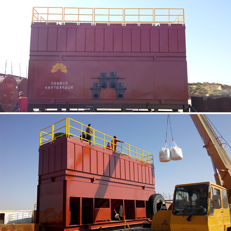 100立方沙漏主要用于石油鉆探壓裂,此設(shè)備可將大量壓裂鉆探所需的砂礫或者陶粒進(jìn)行整裝分層儲(chǔ)備,配合取砂車(chē)進(jìn)行石油壓裂鉆井作業(yè),效率大幅度增加。